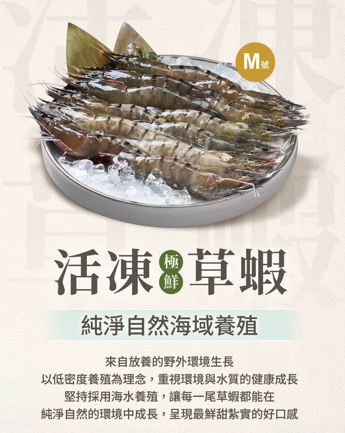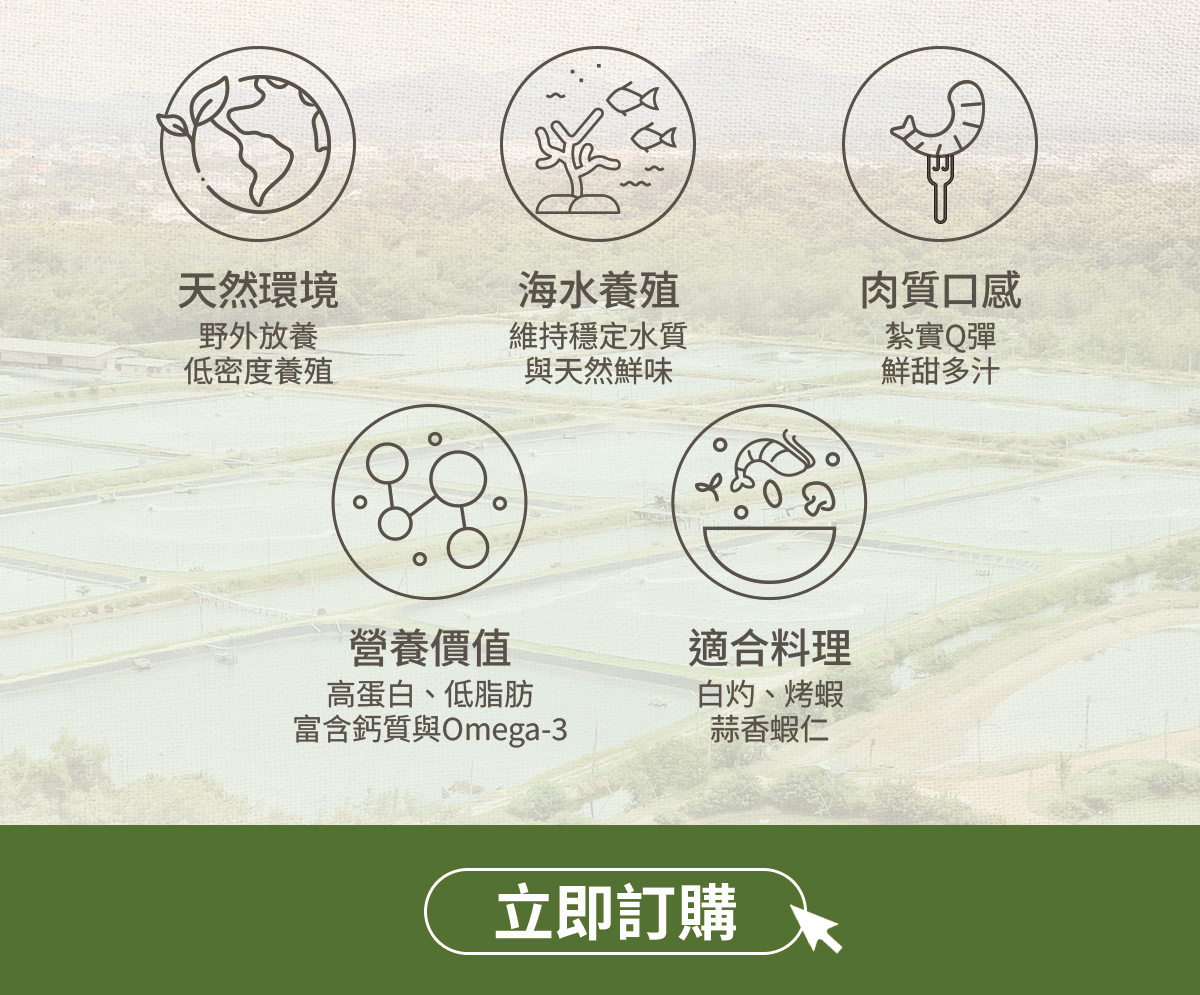 堅持採用海水養殖,讓每一尾草蝦都能在純淨自然的環境中成長,