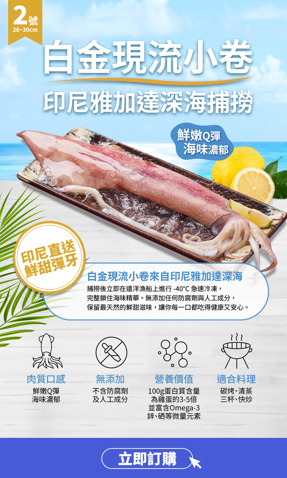 白金現流小卷 2號(26~30cm)|印尼直送・鮮甜彈牙