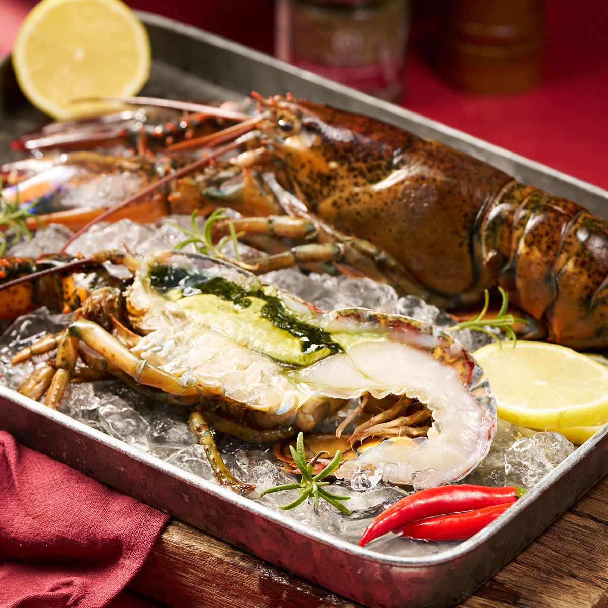 A+級老饕大蝦600g(7-8隻/包)* 2 包、 脆甜草蝦12尾400g* 2 盒、 波士頓龍蝦約500g* 1 隻